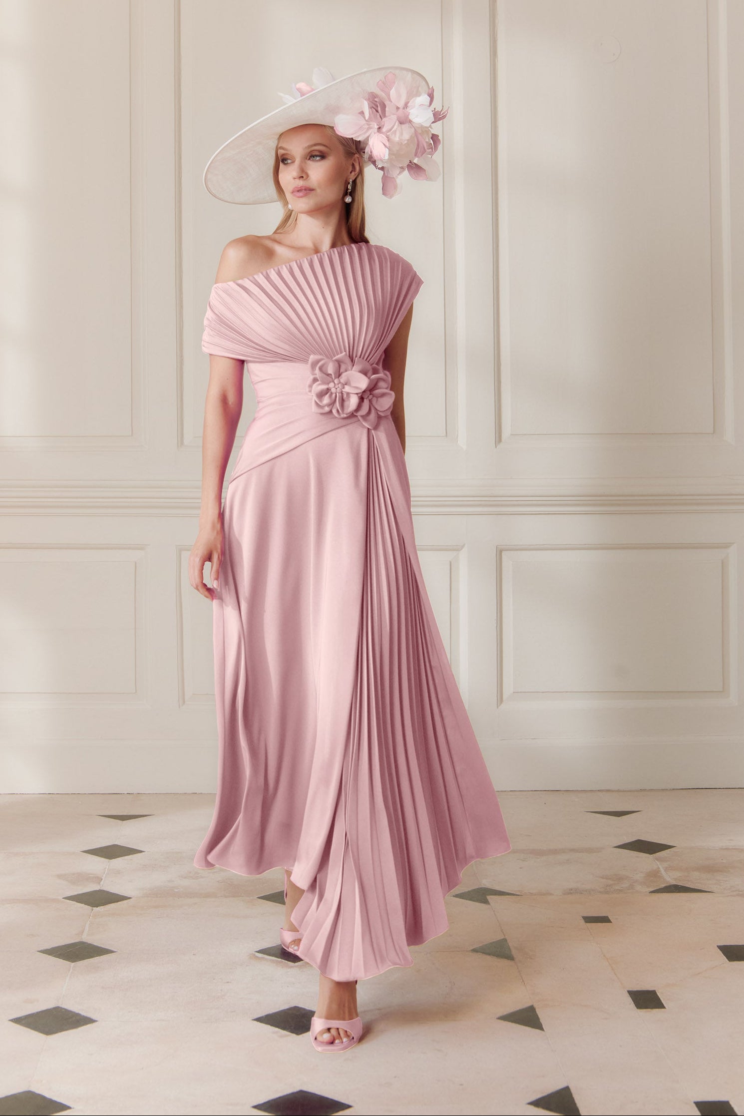 The John Charles 66710 Petal is an exquisite choice for mothers of the bride or groom. This stunning long dress features intricate pleating throughout, creating elegant movement and dimension. Crafted with meticulous attention to detail, the design flatters the figure whilst maintaining sophisticated grace. The petal tone offers a soft, versatile hue that complements a range of complexions and wedding colour schemes. Perfect for formal occasions, this dress combines timeless elegance with contemporary styling, ensuring you'll feel confident and radiant on this special day.