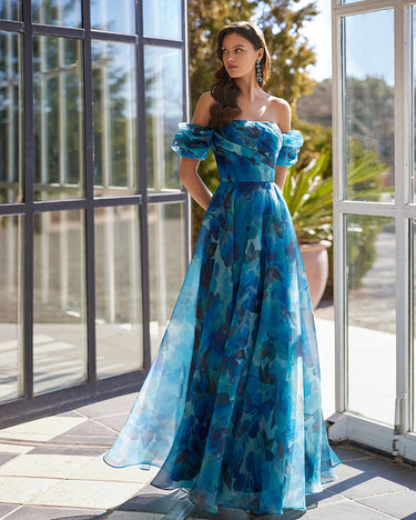 This unique Marfil 9JA7 Cerulean/Aqua off shoulder maxi dress exudes elegance and sophistication. The delicate design and flowy fit make it perfect for any special occasion, while the off shoulder style adds a touch of allure. Stand out in style with this stunning dress.