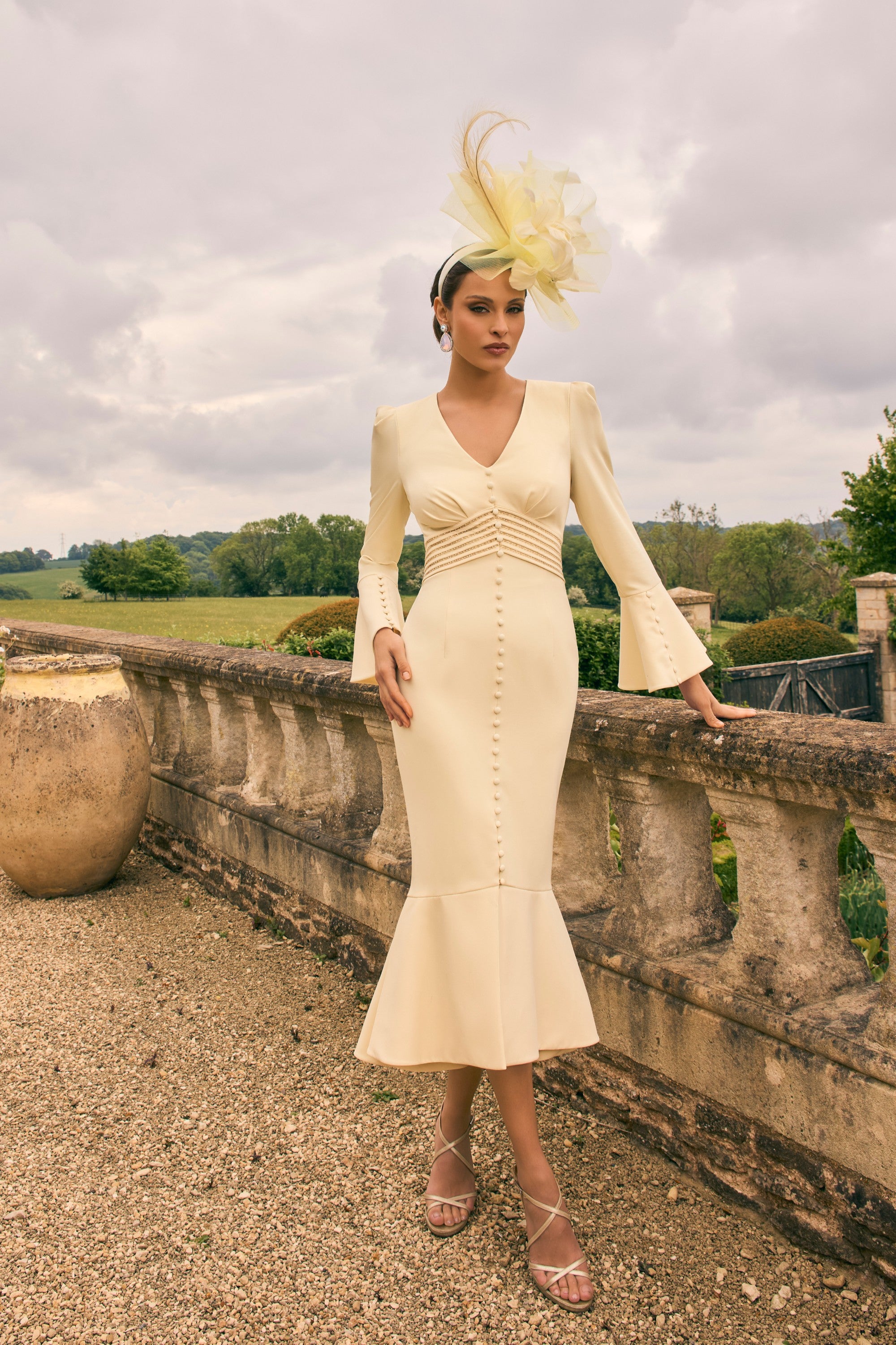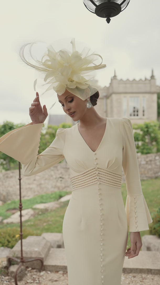 This Veni Infantino 992752 dress in Lemon offers a sophisticated midi length with a fitted silhouette that accentuates your figure. Featuring a graceful fishtail hem, long sleeves, and a flattering V-neckline with button detailing at the front, it combines elegance with subtle unique touches. Ideal for mother of the bride or groom occasions and race day events, this dress provides a refined, polished look suitable for formal daytime gatherings.