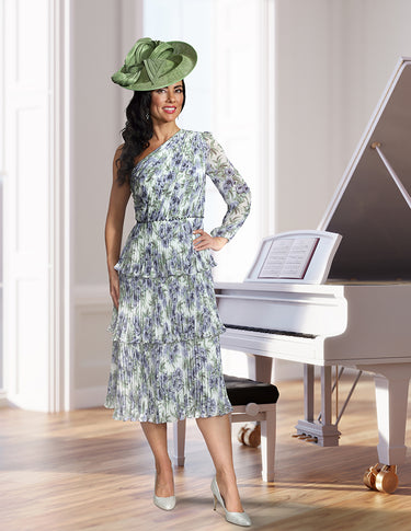 Veromia VO02904 presents an elegant solution for formal occasions. This striking blue print midi dress features a sophisticated one-shoulder design with a single sleeve, crafted from pleated chiffon with a subtle print. The layered skirt adds dimension and movement, creating a refined silhouette suitable for destination weddings, race days, or mother-of-the-bride and groom roles. The combination of contemporary styling and timeless elegance ensures you'll make a polished impression at any special event.