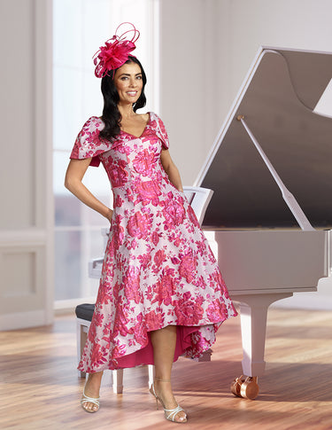 The Veromia VO2910 Blossom is an elegant A-line dress designed for mothers of the bride or groom and special occasion wear. Featuring a flattering V-neckline and a distinctive dipped hemline, this dress combines sophistication with practical style. Functional pockets add everyday versatility to this refined silhouette, making it equally suited to race days and formal celebrations. The graceful A-line cut provides comfortable movement whilst maintaining a polished appearance, ensuring you look and feel confident at any significant event.