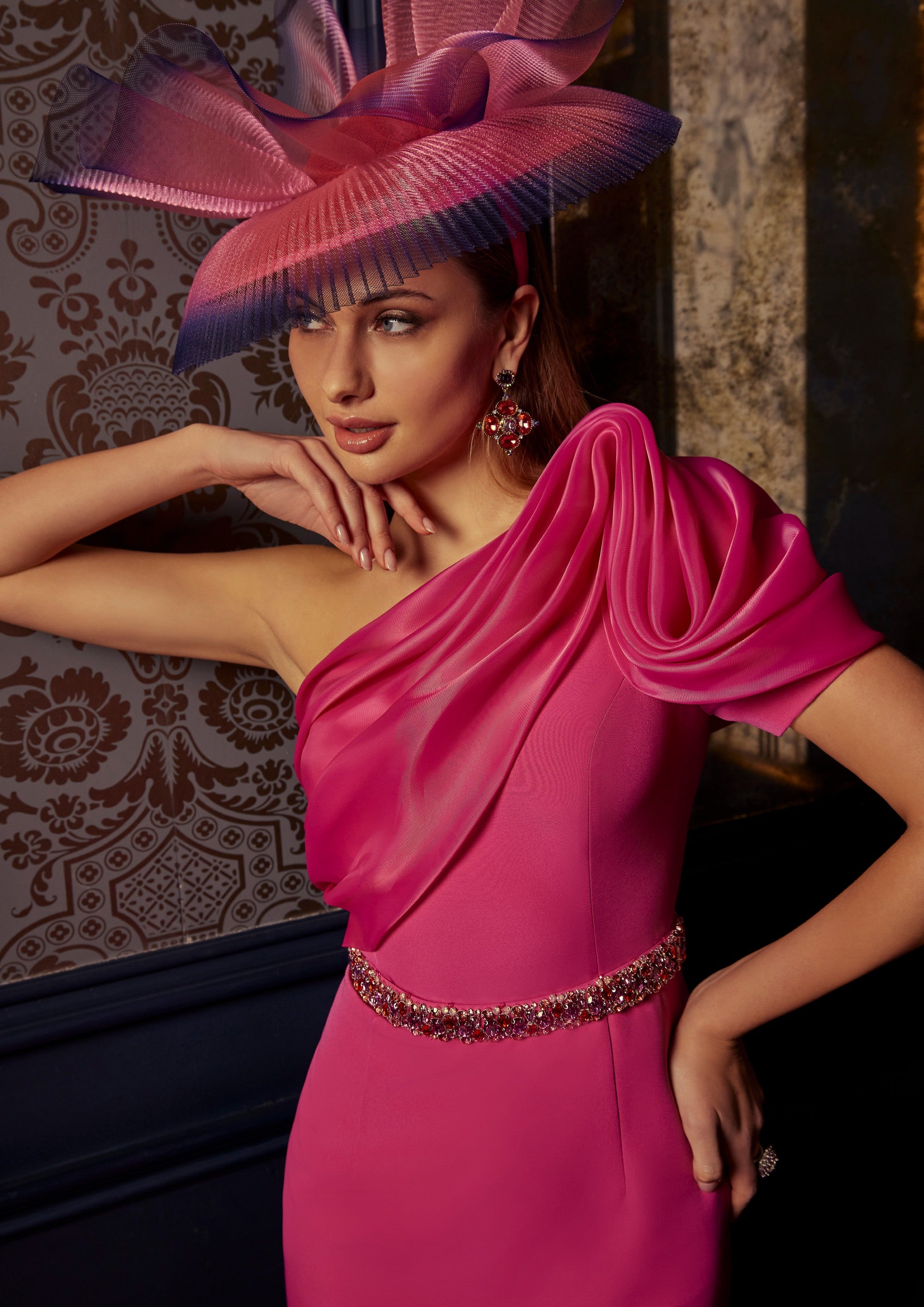 Expertly crafted, the Veni Infantino 992507S Candy dress features a contemporary one-shoulder design made from pleated organza. The dress also includes a beaded waistband, adding a touch of elegance. Perfect for any special occasion, the mid-length dress is the ideal choice for the mother of the bride or groom or a stylish cocktail party.