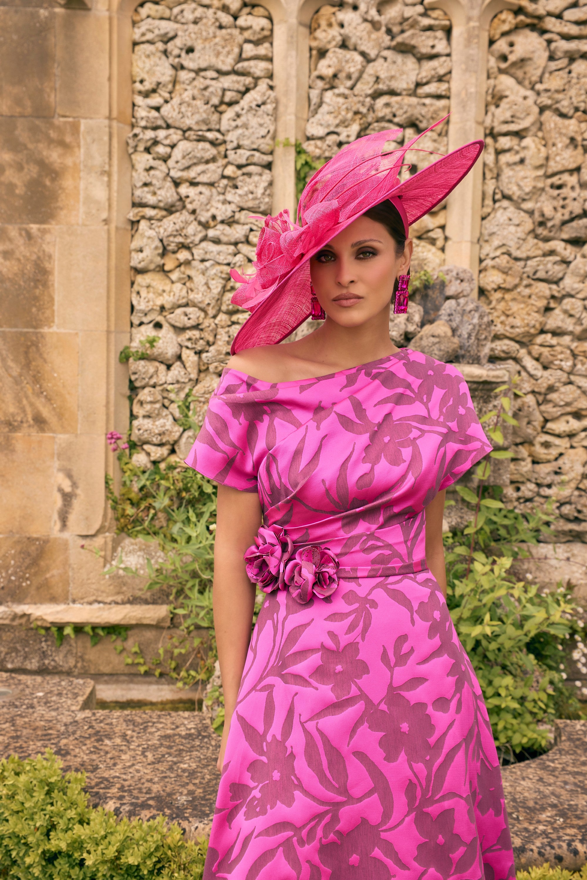 This Veni Infantino 992773 midi dress in floral wild rose print features a striking Mikado print and an asymmetric neckline for a modern twist. The elegant flower corsage accentuates the waist, creating a flattering silhouette. Perfectly suited for mothers of the bride or groom, this sophisticated design offers both style and comfort for your special occasion.