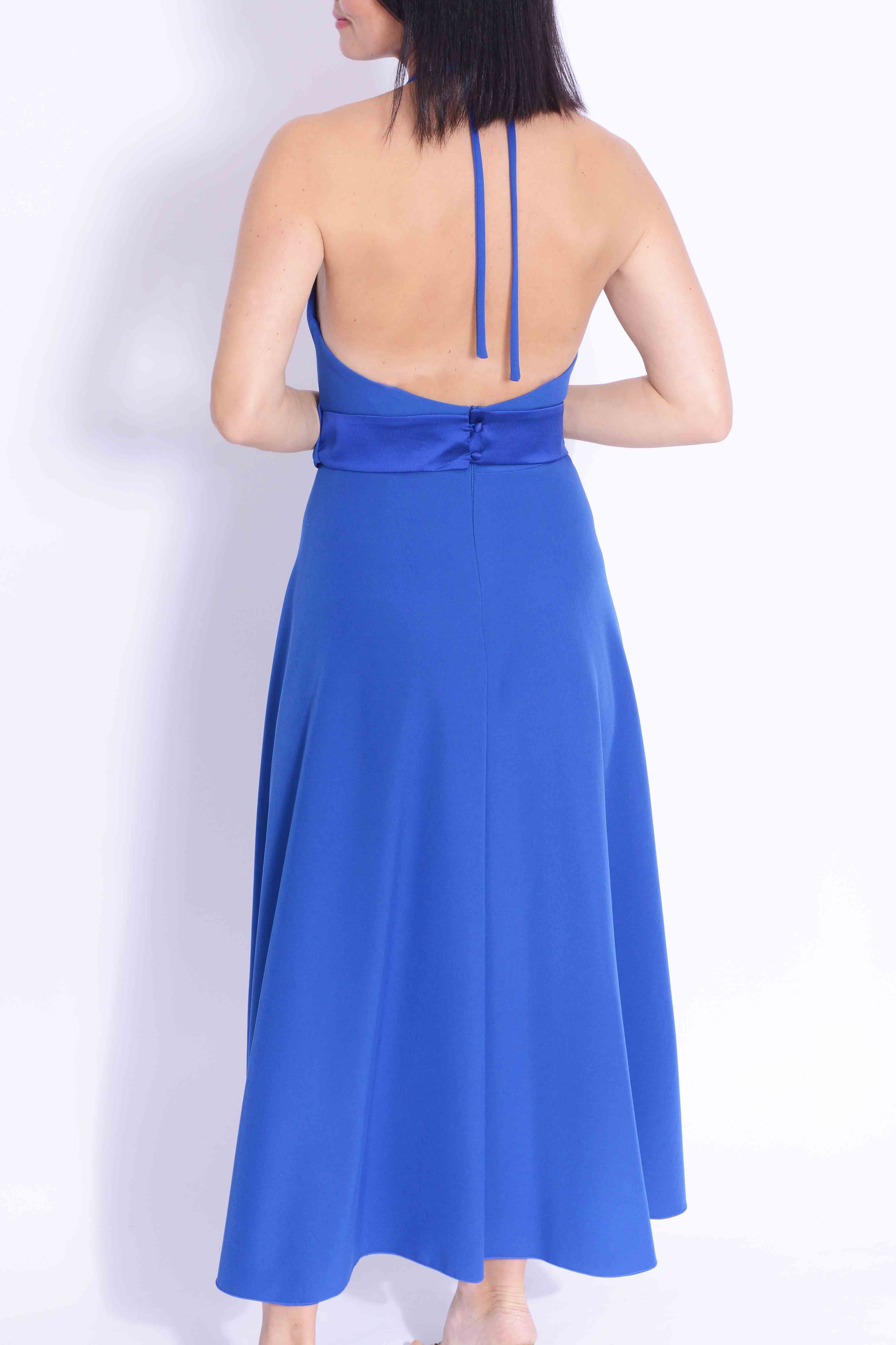 The Sonia Pena 1233007 Azul is an elegant A-line midi dress featuring a halter neck design and a coordinating belt. Perfectly suited for mothers of the bride or groom, this dress offers a refined silhouette ideal for weddings, summer events, and destination celebrations. Its sophisticated cut ensures comfort and style, making it a standout choice for formal occasions.