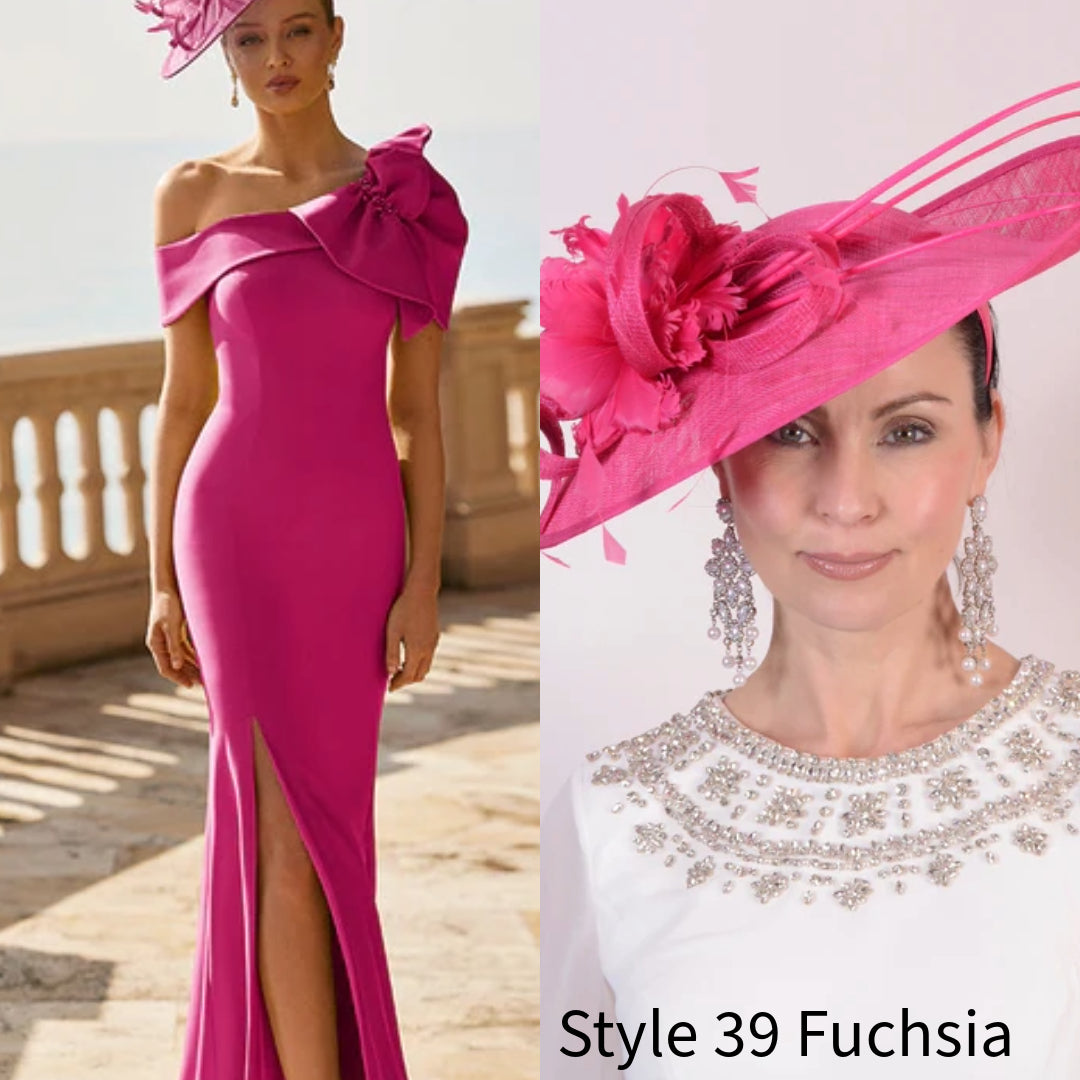 Introducing the Couture Club 9G40 Fuchsia dress, the perfect balance of style and sophistication. This maxi fit and flare dress features a striking asymmetrical neckline and a high split at the front, adding a touch of glamour to any occasion.