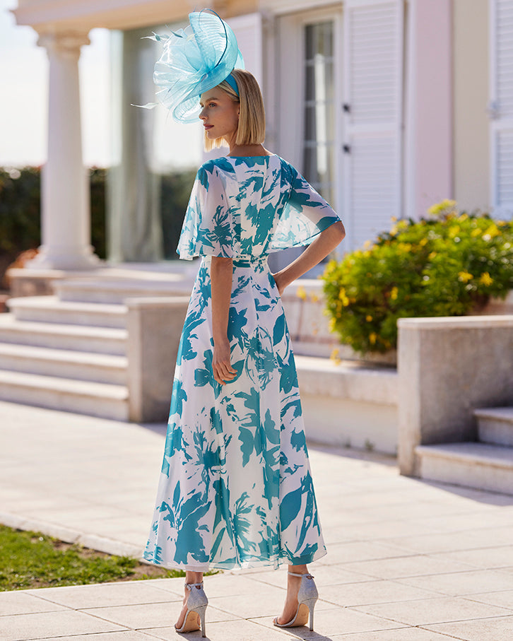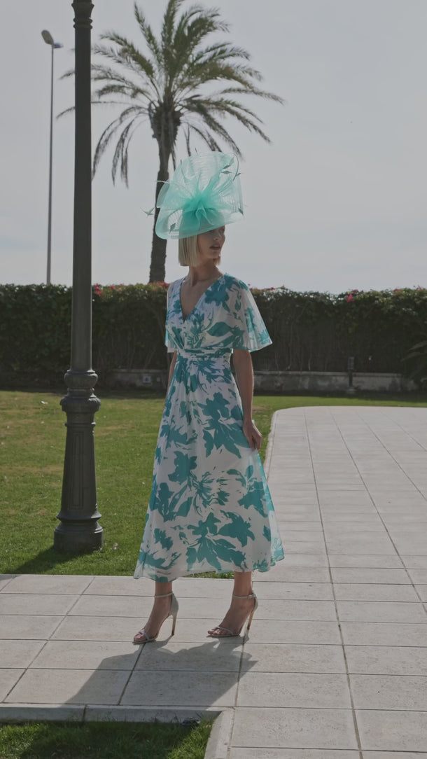 Upgrade your wardrobe with the Couture Club 9GC7 Turquoise dress. Featuring a flattering A-line midi cut and airy chiffon material, this dress is perfect for any occasion. The eye-catching print and flowy short sleeves add a touch of elegance and style. Elevate your look with this fashionable piece.