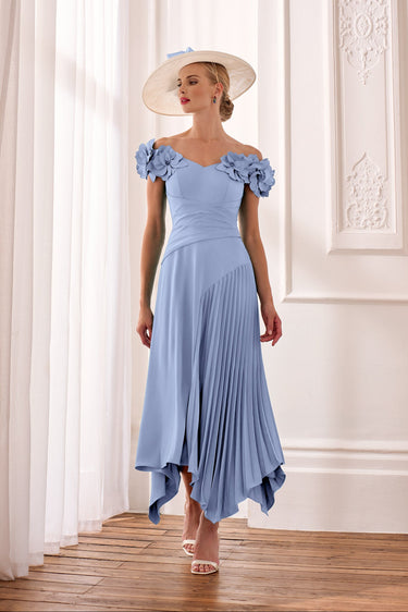 Discover refined elegance with the John Charles 66632B Sky dress, a masterpiece of contemporary formal wear. This A-line crepe silhouette features exquisite cut work detailing and dimensional 3D floral embellishments that showcase exceptional craftsmanship. The bardot neckline gracefully frames the shoulders whilst creating a flattering, balanced proportion. Meticulously designed for discerning occasions, this dress seamlessly blends artistic detail with wearable sophistication, delivering understated luxury and timeless appeal.