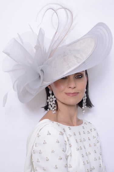 Expertly crafted by Snoxell Gwyther, the 1034 is a statement hatinator with stylish crin edging and elegant feather quills. Its design exudes sophistication, making it the perfect accessory for any formal event. Elevate your look and make a statement with this luxurious hatinator.