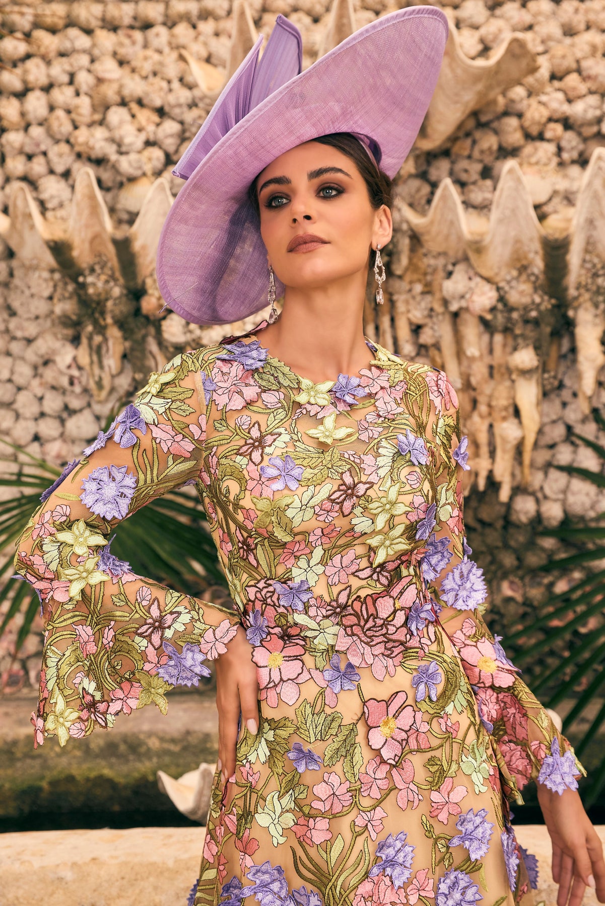 The Veni Infantino 992794B Garden Floral midi dress features an elegant A-line silhouette crafted from delicate tulle. Its long sleeves and intricate flower appliqué detailing make it an exquisite choice for mothers of the bride or groom, offering a refined and graceful look suitable for formal events. This dress combines timeless style with subtle floral accents to ensure a sophisticated presence on any special occasion.